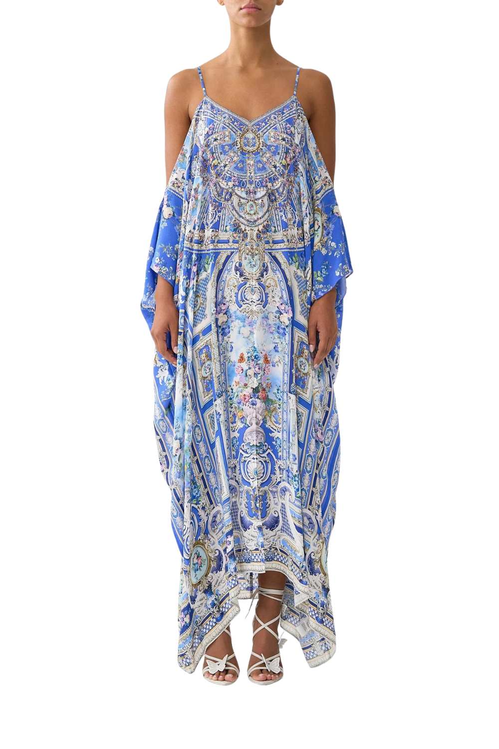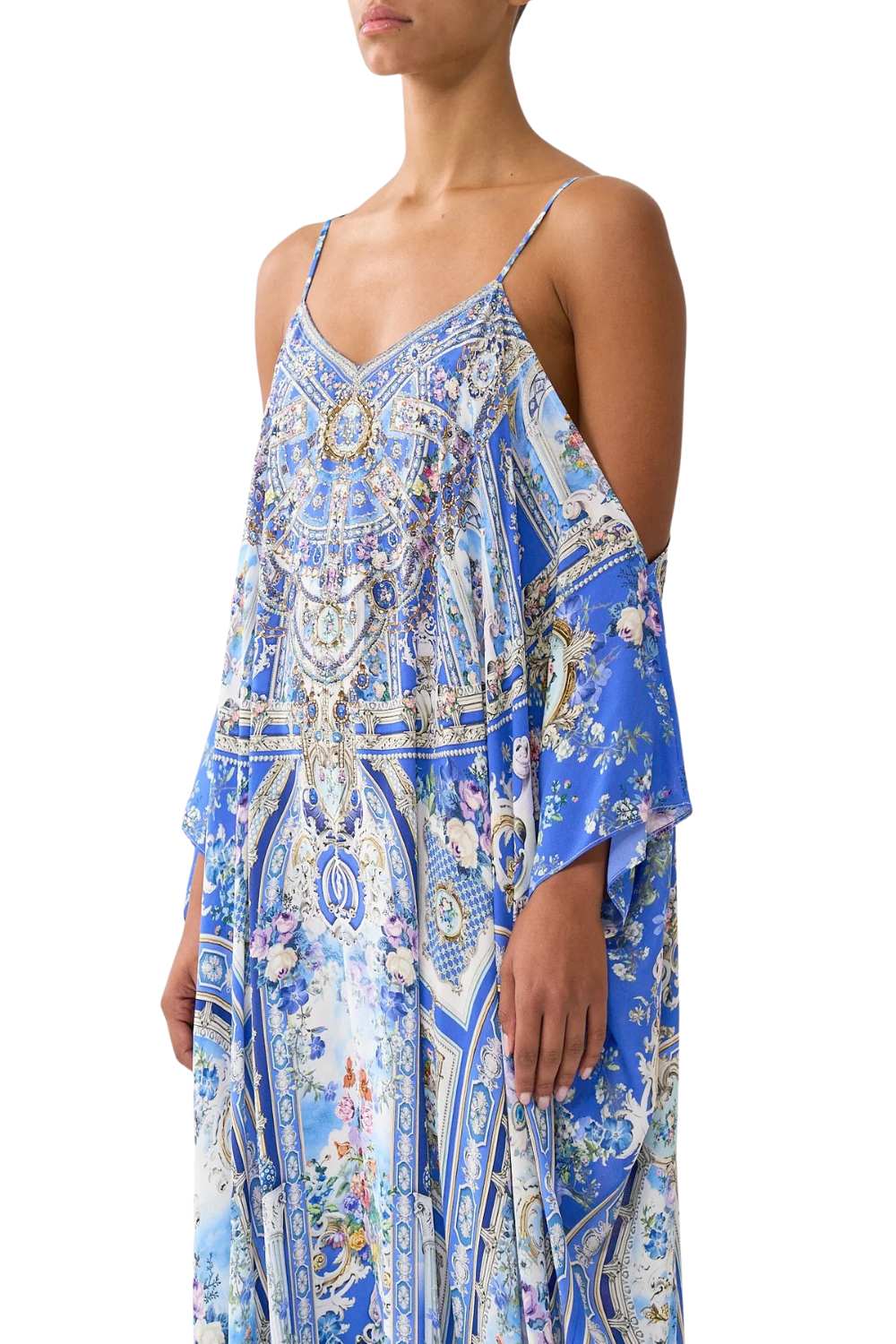 Artisan-crafted and endlessly graceful, Camilla Ottoman Opulence Kaftan stuns in a limited-edition print with a relaxed, full-length silhouette. Featuring a drop-shoulder design and flowing ¾ sleeves, adjustable straps add a touch of versatility to this effortless statement piece. A wearable work of art for resort-ready elegance.