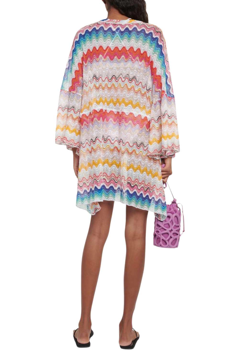 Semi-sheer and gently stretchy, it drapes with ease in an oversized silhouette that falls below the hip, creating a relaxed yet refined shape. Perfect thrown over swimwear, it captures that unmistakable Missoni balance of comfort, movement, and understated glamour.
