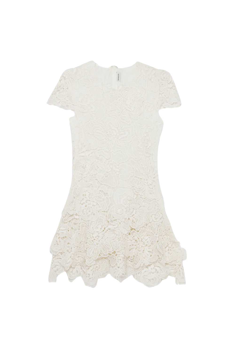 The Novelle Lace Mini Dress in White is Simkhai’s most delicate piece in this season’s range — lace over a structured mini that has internal support so the dress works on its own. The white lace reads as genuinely bridal-adjacent without being costume; the mini length keeps it in the territory of a confident summer dress.