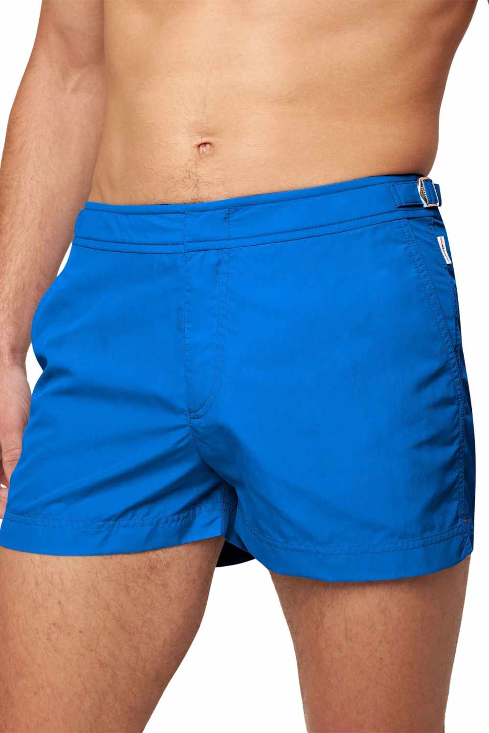 Shortest style of swim short. Based on the pattern of a man’s traditional tailored trouser and comprising 60 essential elements, our signature adjustable side-fasteners give you control of the fit.