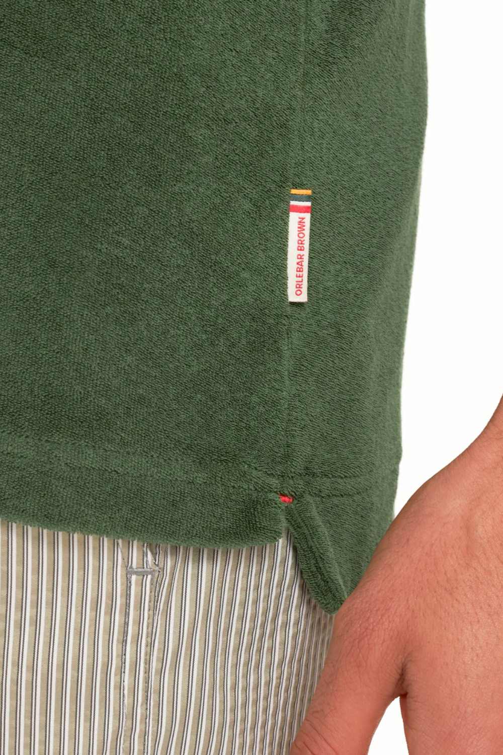 Our Terry towelling polo shirt is a true O.B Hero. This timeless holiday style boasts a modern, tailored fit that produces a favourable silhouette. It is elevated by an authentic resort placket and a straight hem that looks best worn untucked. Tailored fit Organic cotton towelling One-piece collar Short, buttonless resort placket Straight hem with side seam vents & extended back hem