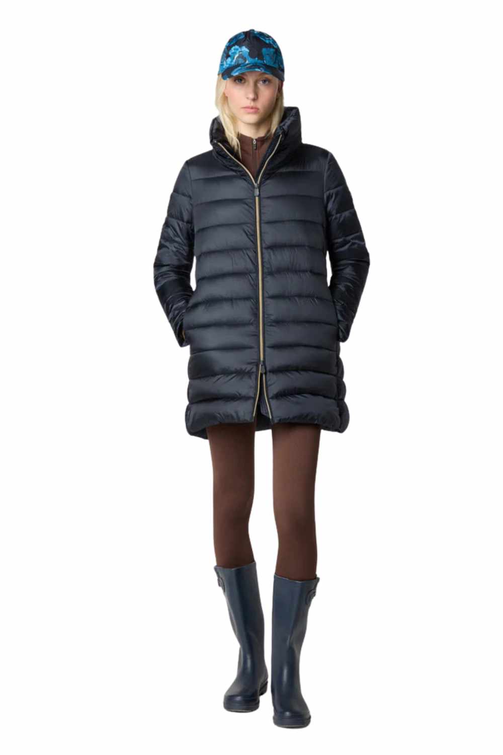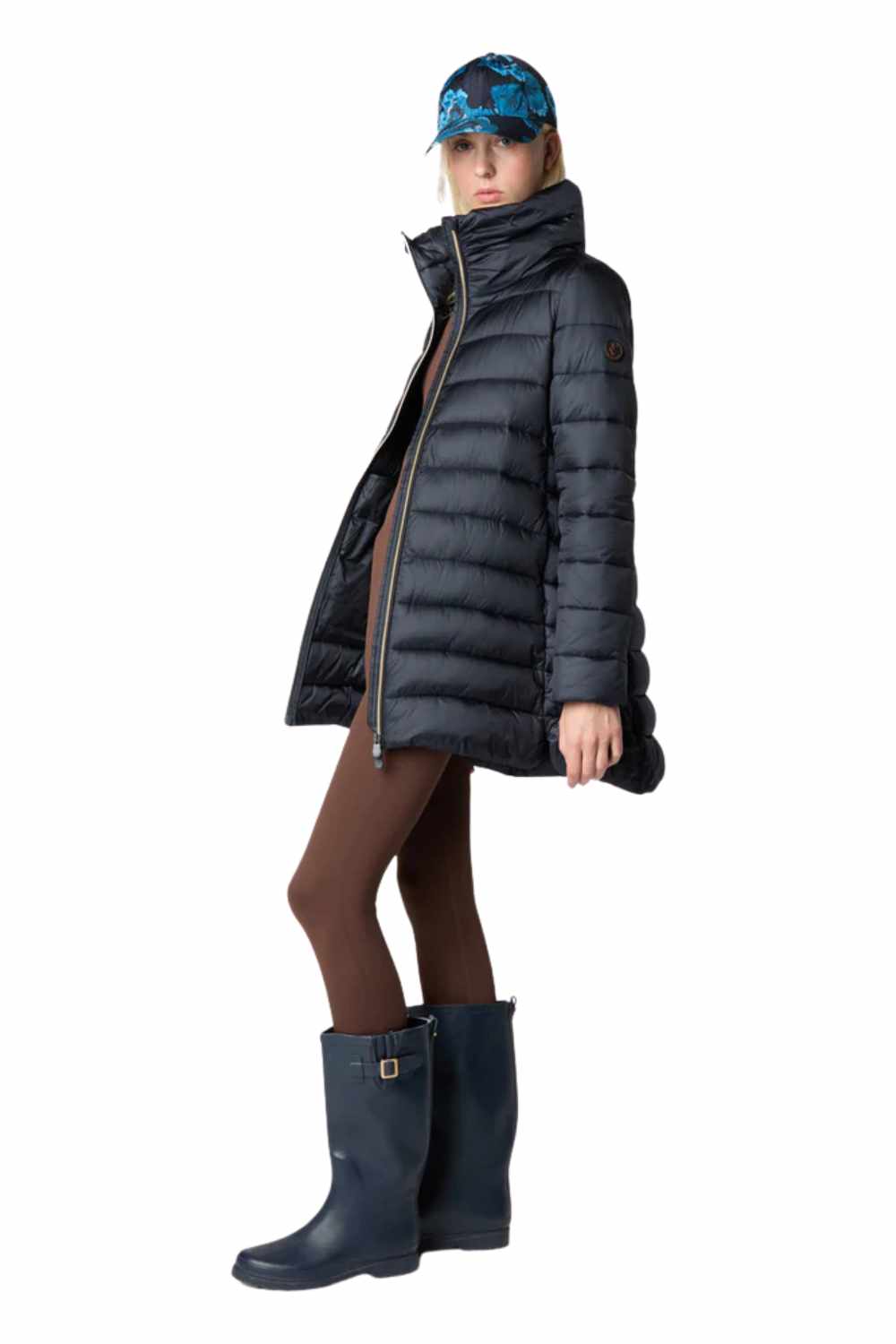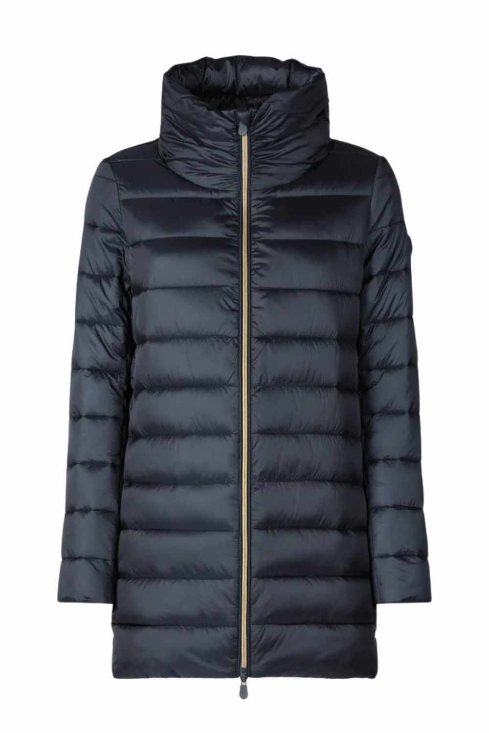 The Lydia model women’s puffer jacket is a cold-weather wardrobe essential with its hip-length A-line silhouette and shiny nylon finish. Lightweight yet warm thanks to its animal-free Plumtech® padding, it features a voluminous collar and front zip closure. Tonal details like the custom zip pullers and round logo on the sleeve complete the design with a distinctive Save The Duck touch. The model wears a 1 and her height is 176cm. 100% nylon with anti-static finishing and a shiny iridescent fashion look. synthetic padding guarantees excellent thermo insulation and comfort.