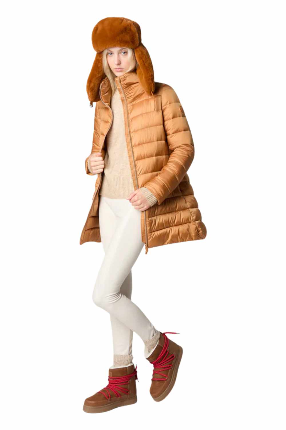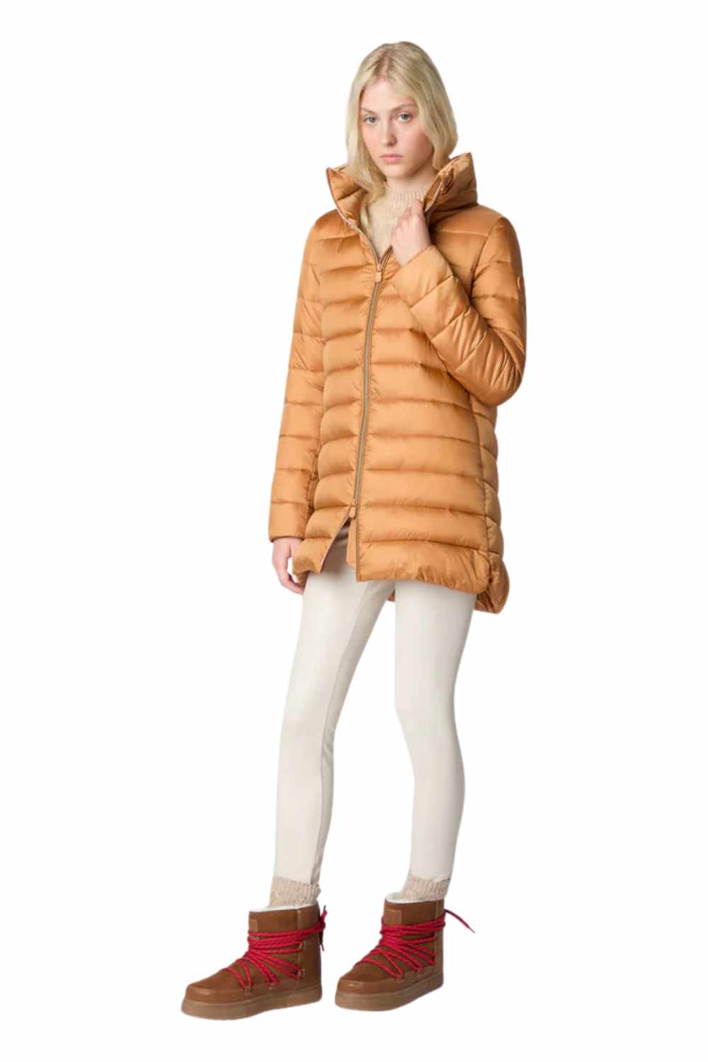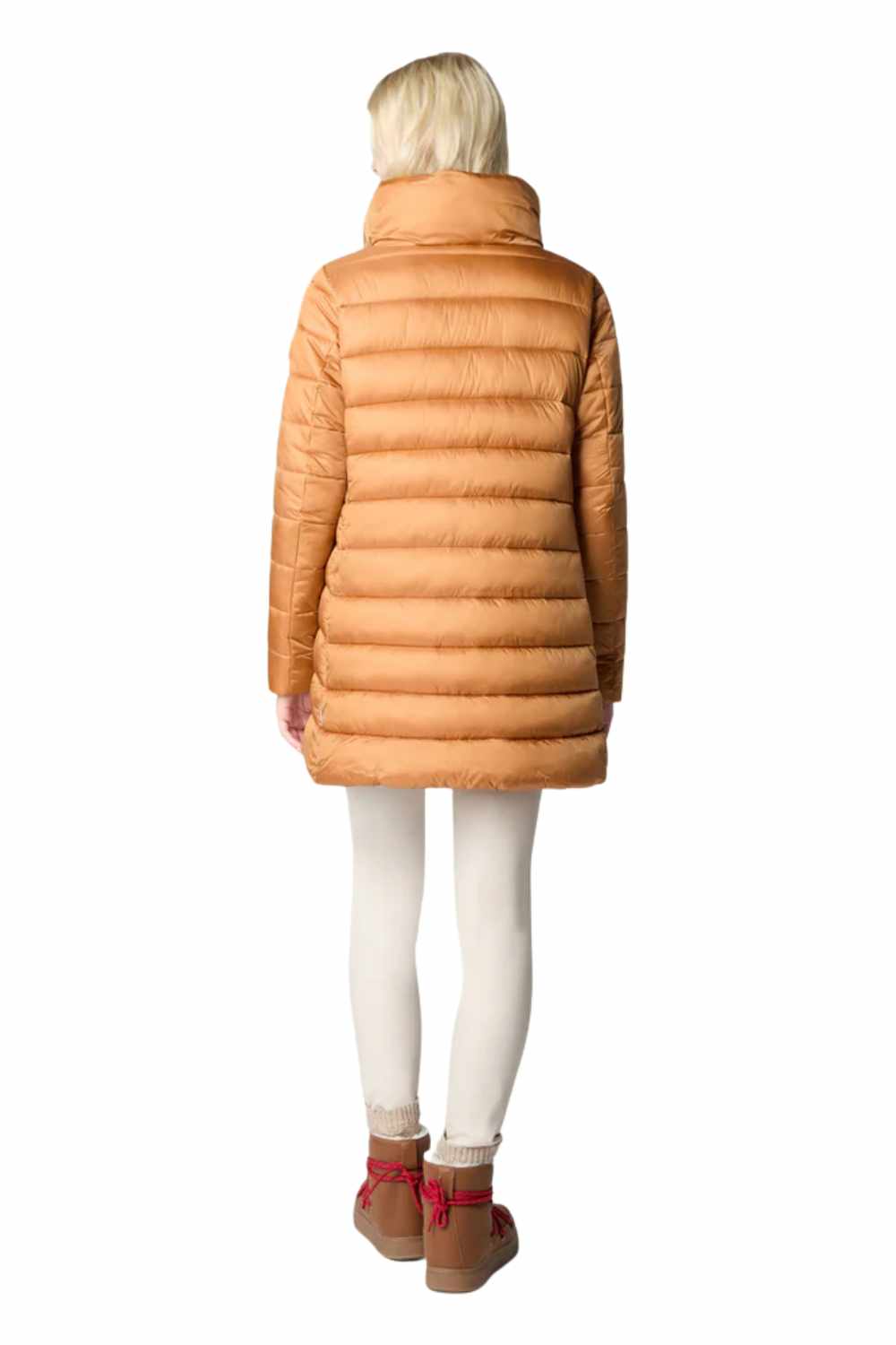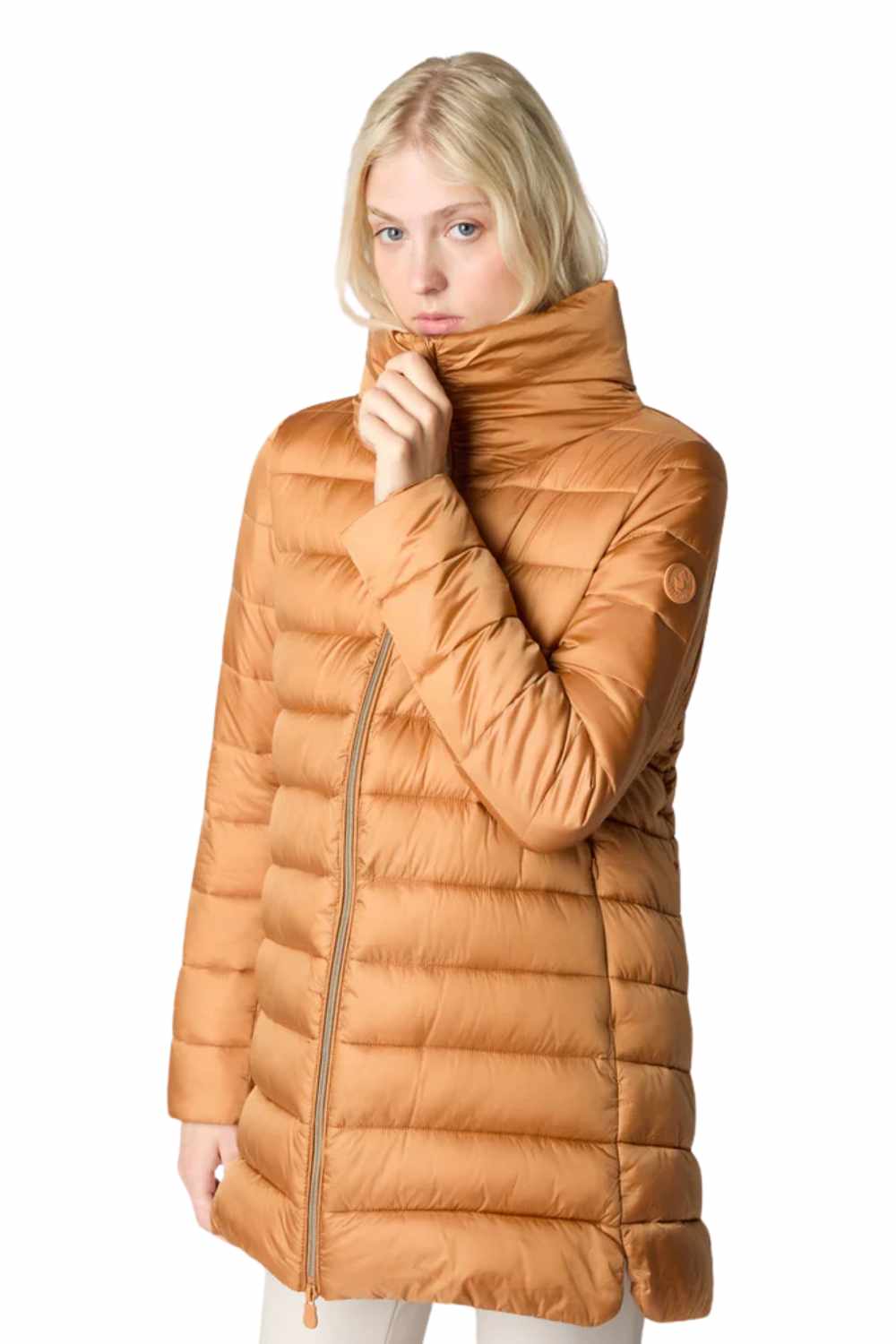 The Lydia model women’s puffer jacket is a cold-weather wardrobe essential with its hip-length A-line silhouette and shiny nylon finish. Lightweight yet warm thanks to its animal-free Plumtech® padding, it features a voluminous collar and front zip closure. Tonal details like the custom zip pullers and round logo on the sleeve complete the design with a distinctive Save The Duck touch. The model wears a 1 and her height is 176cm. 100% nylon with anti-static finishing and a shiny iridescent fashion look. synthetic padding guarantees excellent thermo insulation and comfort. Fits true to size: this item is designed for a regular fit.