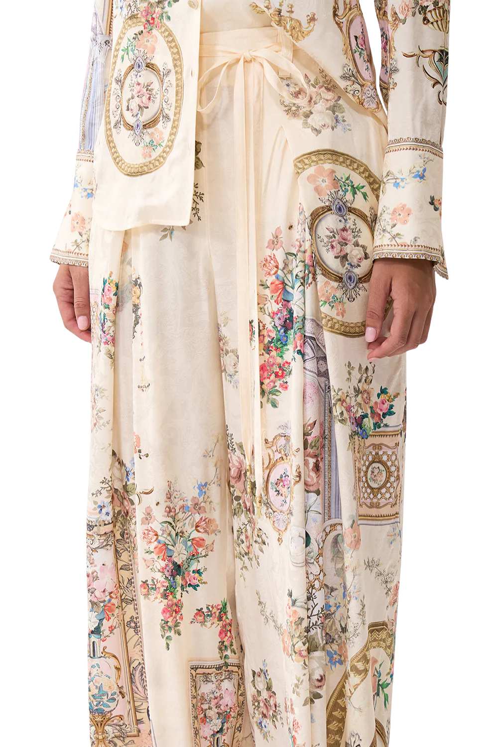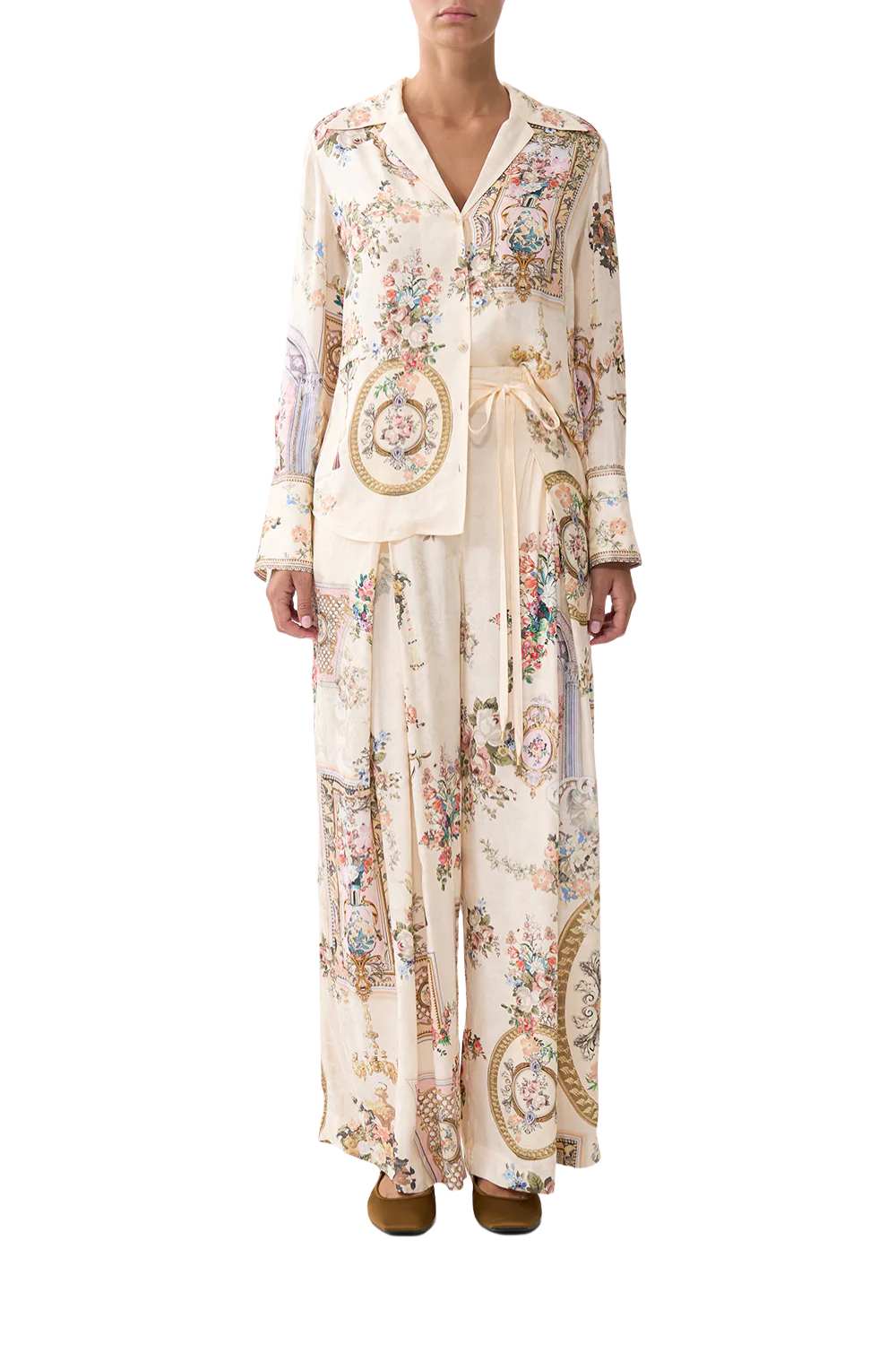 Laid-back elegance with a tailored twist. Camilla Twilight in Istanbul Wide Leg Pant are handcrafted in an exclusive limited-edition print. Fitted at the waist and flowing into a fluid wide-leg silhouette, it features a matching waist tie, belt loops, and back pockets for elevated versatility. A statement in every step.