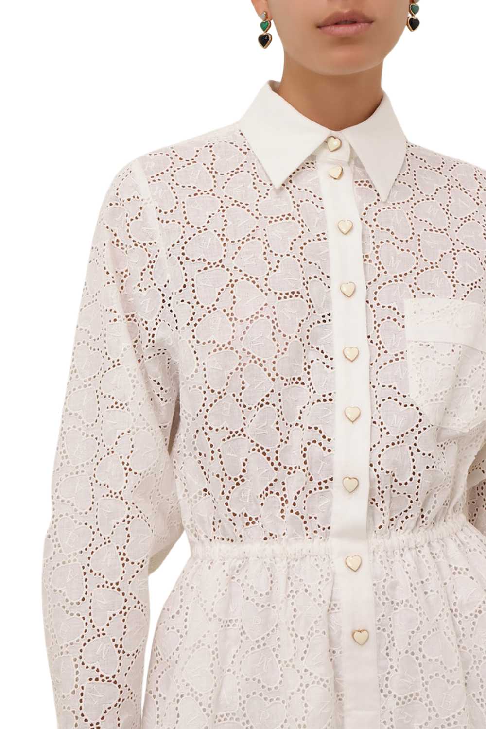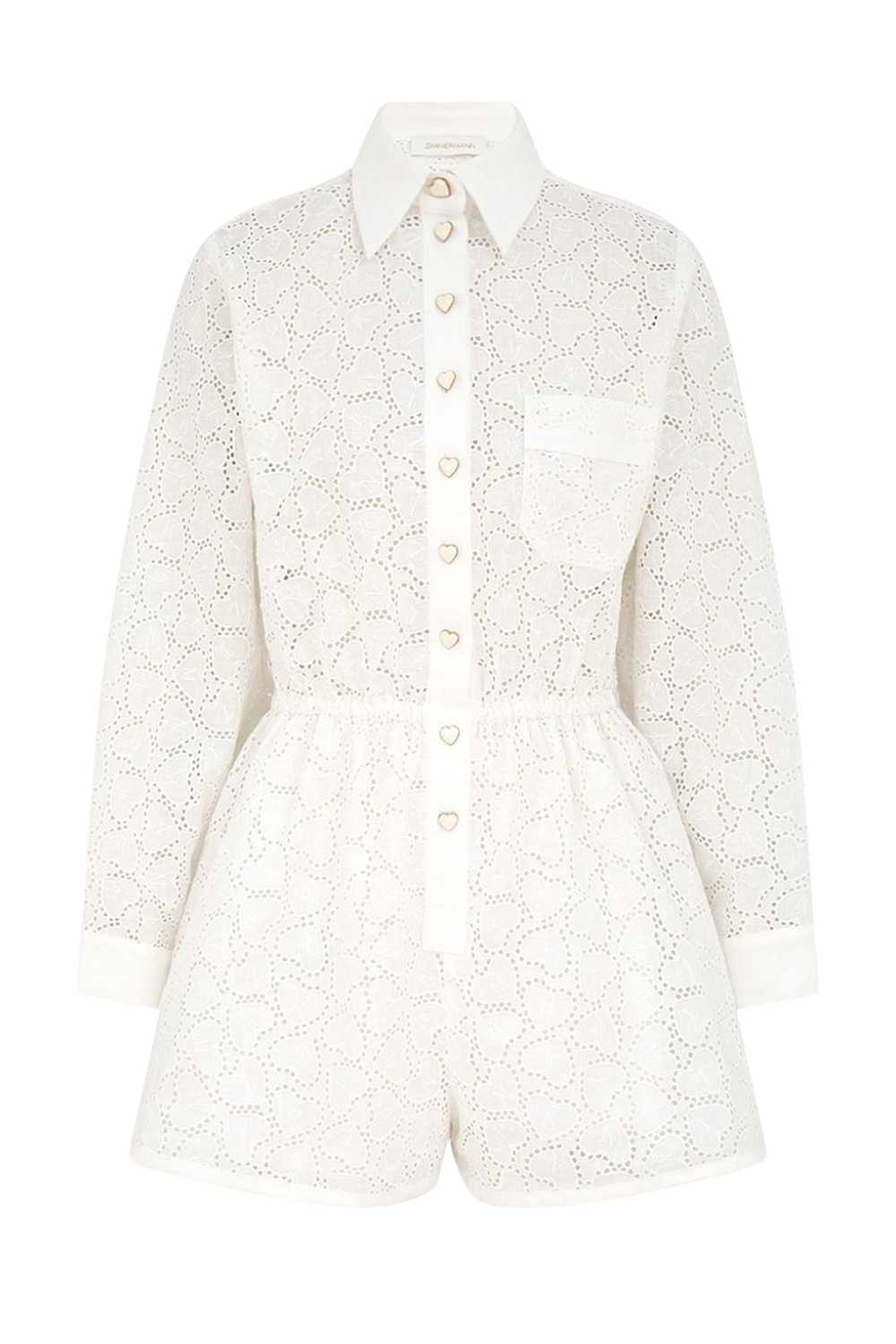 Playful meets polished, Zimmermann embroidered linen playsuit features a relaxed, loose fit with an elasticated waist for effortless shape. Breezy yet refined, it’s your go-to piece for sun-drenched days and carefree evenings. Just slip on and glow.