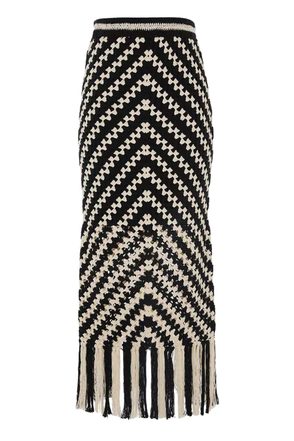 Halliday Hand Crochet Skirt Zimmermann. 100% cotton. Chevron Lining: 86% polyester, 14% elastane. Elasticated waistband.