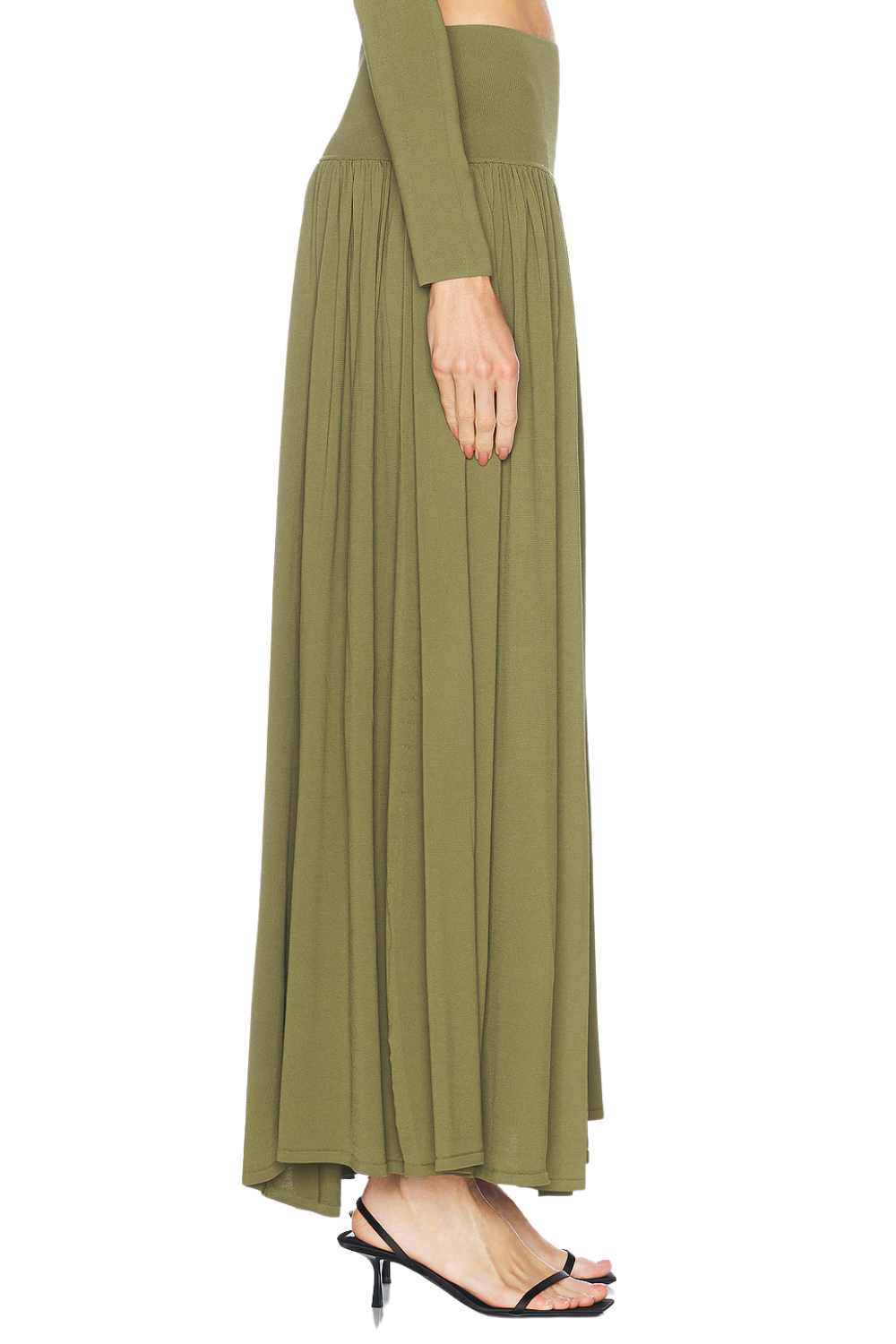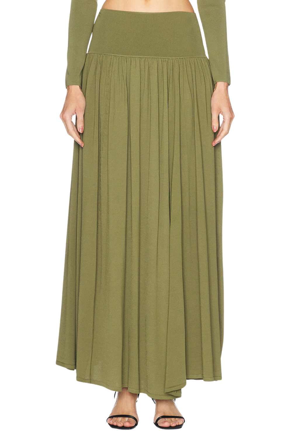 Elevate your everyday elegance with the Zimmermann Wylie Knitted Long Skirt in Khaki. Crafted from premium viscose jersey, this sleek, full-length silhouette hugs the body with fluid movement and effortless stretch. Its minimalist design and earthy tone make it a versatile piece—perfect for pairing with matching knits or dressing up with silk blouses. Understated sophistication with a modern edge—an essential for transitional dressing.